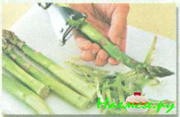 3. Тем временем спаржу вымыть, срезать жесткие концы, при необходимости почистить.
