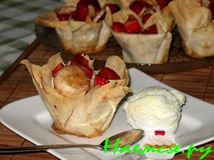 сверху шарик сорбе(+ клубничка) и сразу же подаём.