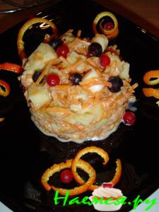 Порезать кубиками бананы, киви. Добавить размороженную клубнику, заправить йогуртом.