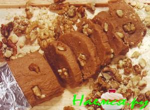 Шарики из ореховой массы заверните в лепёшки из массы с какао и кофе, уберите на 15 минут в морозилку. Затем заверните в лепёшки из массы с печеньем и снова в морозилку на 15 минут.