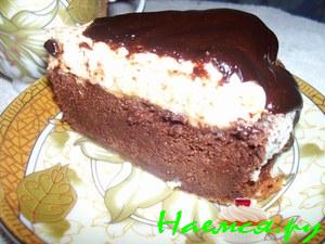 Охладить 2-3 минуты, хорошо размешать с желтками. Добавить взбитые белки и смешать в однородную массу. Эту форму вылить в форму для выпечки торта - высота слоя должна составлять 5 см. Посыпать оставшейся цедрой.