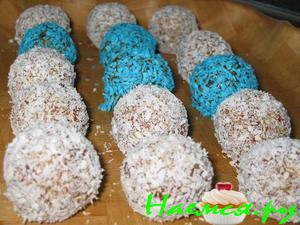 Скатать шарики примерно с грецкий орех, обвалять в какао.