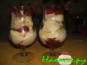 Подача десерта: возьмите бокал или фужер.И слоями кладите,соус ,мороженное....на верх сливки и украсьте ягодкой "физалис"