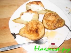 Этой смесью плотно начинить груши, положить их в огнеупорную посуду и поставить на 30 минут в разогретую до 180С духовку.