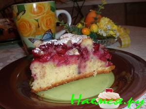 Форму смазать маслом,присыпать мукой и выложить вишню