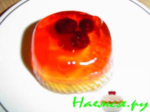 Готовое желе освобождаем от формы,опустив её на несколько секунд в горячую воду.