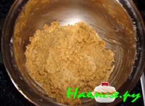 Печенье поломать и тщательно потолочь, смешать со сливочным маслом.
