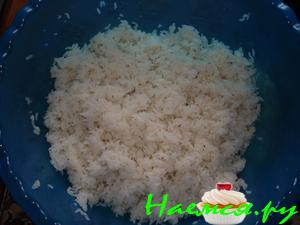 Рис обжаривается в кипящем жире,чтобы при варке не слипался.