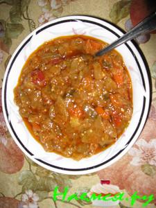 В сотейнике разогреть небольшое кол-во масла любое на ваш вкус,можно оливковое,но рафинированное. Лук порезать полукольцами и немного обжарить в этом масле,потом добавить морковь,порезанную тоже полукольцами,потушить мин.10. Далее кабачок,порезанный кубиком,тоже потушить мин. 10. Затем идет перец. Я режу его соломкой. После того как перец немного потушиться,добавить баклажан,порезанный крупными кубиками.Добавить немного масла раст,все перемешать,потушить мин.10 и добавить помидор,порезанный дольками. Перемешать,накрыть крышкой и пусть все тушится мин.20-25. Затем добавить все специи по вкусу,добавить чеснок измельчённый и потушить ещё 5 мин. И всё готово.