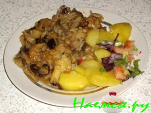 Чеснок чистим, мелко режем (не давим), добавляем. Чернослив и орехи мелко режем, добавляем.