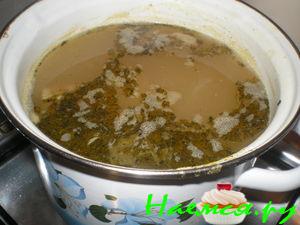 Когда в горохе останется совсем мало воды, переложить в него обжаренный лук с приправами, посолить и варить до готовности.