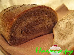 Добавить ржаную муку перемешать,затем постепенно добавляя пшеничную муку.