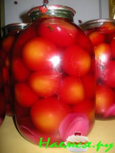 Огурцы и помидоры разложить по баночкам. Туда же все приправы.Залить кипятком.Выдержать 20 мин.Слить рассол и закипятить.В кипящий рассол положить сахар, соль уксус и залить помидоры или огурцы. Закрыть(закатать) крышками и укутать.