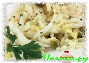 Натрите хрен на крупнoй терке. На каждую полоску (круг) капусты положите по примерни 1 ч.л. тертого хрена (можно и больше - сколько пространство возьмет - чтобы получился пакет - пробуйте сами....) Сформуйте пакет.
