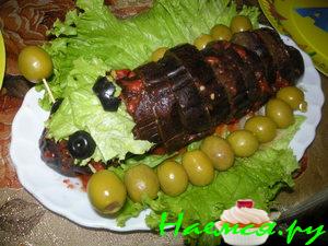 Баклажаны порезать вдоль и поперек на 8 частей.Засыпать солью, дать постоять 2 часа.