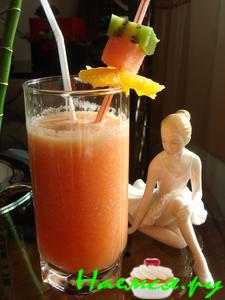 Убрать из кастрюли заварку и пряности,добавить мяту(помытую предварительно) + грейпфрут (грейпфрут помыть и порезать кругляшками)+помытую чернику.