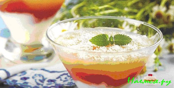 4) В стаканы или креманки уложите, чередуя, слоями кисели, охладите и посыпьте сахарной пудрой