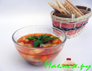 После закипания, огонь убавляется, а бульончик варится до тех пор, пока не станет очень ароматным и довольно наваристым. Готовый бульончик-основа процеживается и немного охлаждается.