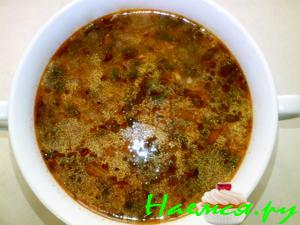 Поставим кастрюлю с водой на огонь.Как закипит опустить мясо(у меня свинина).Снять пену.Минут через 10 закинуть потертую морковь.Отдельно пережарить 1луковицу с 1помидором.Добавим 1ст.л. томатной пасты.И протушим пару минут.Картошечку свеженькую почистим.Отварим рис(у меня в пакетиках) 2шт.Порежем картошку и отправим ее в суп вариться.1,5 головки чеснока мелко порежем.Порежем зеленый лук и петрушку.Затем отправим в суп чеснок и зелень.Добавим хмели-сунели.Добавим в суп наш рис и пережарку с томатной пастой,солим и перчим.Все хорошо размешаем.За 5 минут до готовности добавим лавровый лист.