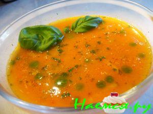 В кастрюлю, в которой будете варить суп, налить оливковое масло, и слегка обжарить в нем крупно порезанный лук, чеснок и морковь, положить порезанный на кусочки картофель и затем осторожно влить в кастрюлю воду. Дать закипеть и убавить огонь, пусть овощной бульон варится на медленном огне. Тем временем займитесь помидорами, их надо измельчить и протереть сквозь ситечко, чтобы семечки не попали в бульон. Креветки слегка поджарьте на оливковом масле. Авокадо нарежьте на мелкие кусочки. Натрите на мелкой терке кусочек имбиря и, когда, будут готовы овощи, положите в бульон имбирь и протертые помидоры, сливочное масло и сливки. Дайте покипеть минут пять. При помощи миксера превратите суп в суп-пюре. При подаче в тарелку с супом положите креветки и кусочки авокадо, украсьте листиками базилика и капельками сливок.