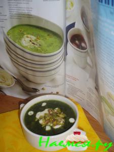 Холодный шпинатный суп с миндалем и перепелиными яйцами