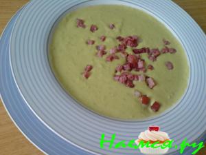 В тарелку наливаем порцию супа,посыпаем орешками и сухариками,украшаем листиками базилика.