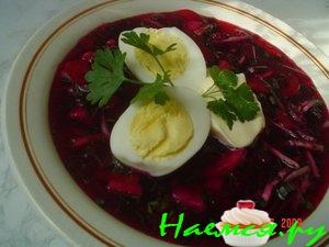 борща-что бы не загустел), окончательно солим, перчим. В каждую порцию нарезаем яйцо "цветочком" и заправляем сметаной.