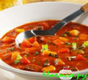 6) Выдавить в суп чеснок, который у нас остался и залить после того, как суп приготовится соус ткемали. И добавить томатную пасту.