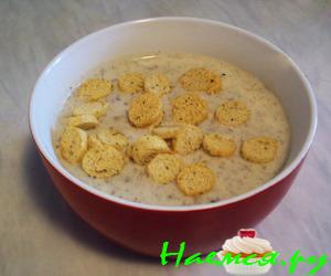 Делаем зажарку из лука и высыпаем в суп.Когда суп уже готов-добавляем натёртый плавленый сырок,кладём зелень,через 3 минуты выключаем суп!!!