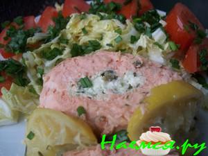 Смазать филе лосося оливковым маслом и посыпать чёрным перцем.