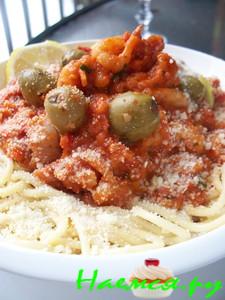 спагетти отваренные в подсоленной воде и сбрызнутые маслом-чтоб не слиплись.