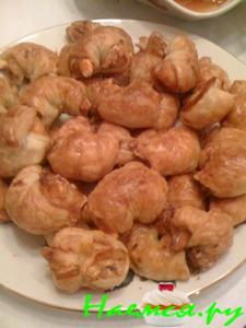 Креветки разморозить, очистить от панциря, оставив последнюю фалангу около хвоста. лосось нарезать на 3 тонких ломтика и обернуть ими креветки, обжарить на сковороде швом вниз и запечь до готовности в духовке или подкрышкой в сковороде на маленьком огне. Спаржу овощечисткой очистить от твердых волокон. Взбить яйцо. Спаржу обвалять в муке, обмакнуть во взбитое яйцо и обвалять в сухарях. Жарить в большом количестве масла до готовности, по готовности выложить на салфетку, чтобы впиталось лишнее масло. Обжарить лисички, добавить соус и прогреть лисички в соусе. на тарелку выложить спаржу, на неё поперек - креветки в лососе швом вниз, на свободный край тарелки выложить лисички с соусом.