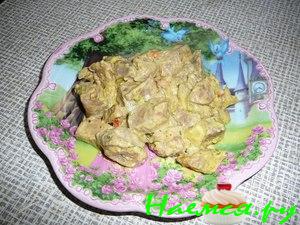Обжарить в оливковом масле перец чили,2 зубчика чеснока и листочки карри.