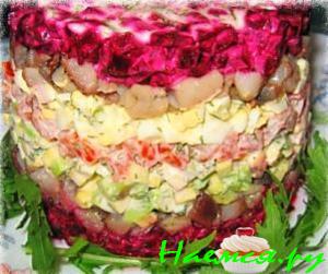 Филе рыбы нарезать на небольшие полосочки, сбрызнуть соком лимона, лук - кольцами, свекла нарезается произвольными кусочками.