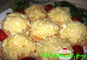 Каждый кусок нарезанного хлеба делим напополам и укладываем по очерёдности:Кусочек рыбки