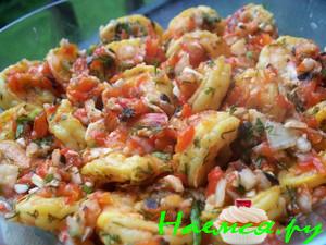 Замариновать креветки в соке одного лимона+соль+табаско+соль,на 1 час.