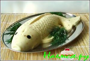 Лук и рыбу мелко порезать, смешать с остальной массой, выложить в форму и в холодильник до застывания.