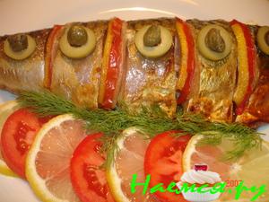 Запеченная в фольге морская рыба с креветками