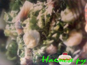 Порвать салат,поместить его на большую тарелку.Положить сверху половинки сваренных яиц и нарезанную небольшими кусочками сельдь.Покрошить зел.лук,добавить к салату.Присыпать сверху тертым сыром.Перед подачей полить заправкой и перемешать.