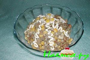 Шпроты размять, огурец и лук мелко нарезать, с кукурузы слить воду, чеснок через пресс, все перемешать заправить майонезом и добавить сухарики. Можно без сухарей.
