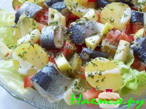 Сельдь и помидор нарезать кубиками небольшими. Сырок натереть на крупной тёрке. Выкладывать слоями: слой сельди, слой сыра, слой помидора. Сверху украсить укропом, можно всё полить маслом, или всё смазать майонезом.