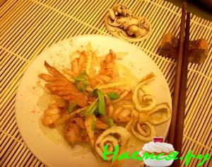 Кальмар с куриной грудкой и морской капустой