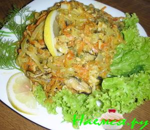 Салат с мидиями и корейской морковью