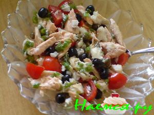 Салат из отварной рыбы и баклажанов