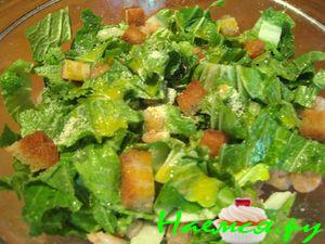 Цезарь с креветками, салатом и сыром