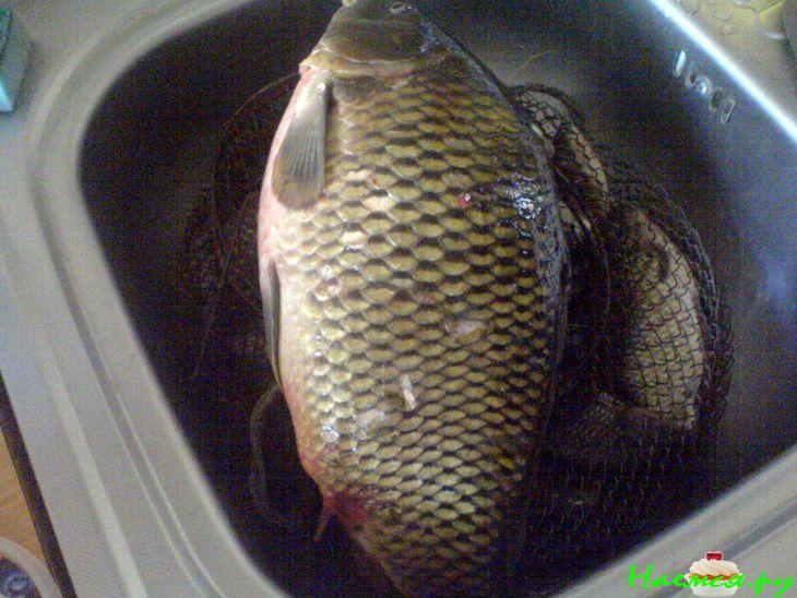 Берем карпа,если есть возможность посылаем мужа на рыбалку,ну а более приемлимый вариант-покупаем,только желательно что бы рыбка была "первой" свежести, не замороженая.Чистим,моем,потрошим,удаляем жабры,глаза.Обсушиваем бумажным полотенцем ,взбрызгиваем соком лимона и внутри и снаружи,натираем сухим специями для рыбы, в состав которых входит и соль.И оставляем на 30-40 мин.
