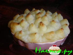 Форму с запеканкой поставить в бОльшую форму, наполненную горячей водой и запекать при 170 градусах около 30 минут.