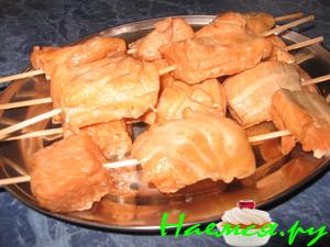 Филе нарезать на порционные кусочки и положить в подготовленный маринад. Оставить на 30 минут.