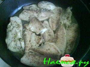 филе телапии разрезано пополам,внутрь была уложена эта смесь.