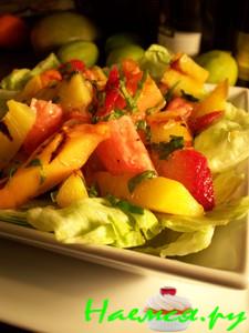 Почистить манго и порезать мелкими кубиками.Помидор,паприку помыть ,обсушить и порезать кубиками,кинзу помыть,обсушить и порезать меленько.Чеснок почистить и порезать меленько.Все порезаные продукты на салад смешать полить соком лимона и соусом табаско,перемешать и дать настояться 20минут.